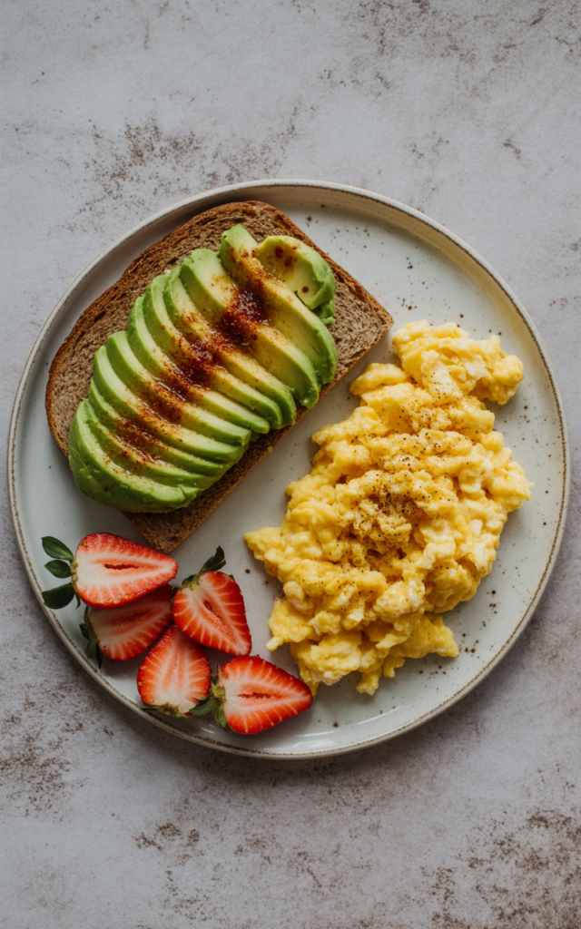 The combination of eggs, avocado, and strawberries provides everything you need for an energizing meal: high-quality protein, heart-healthy monounsaturated fats, and antioxidants. The creamy richness of avocado complements the savory eggs, while strawberries add a bright, refreshing contrast.