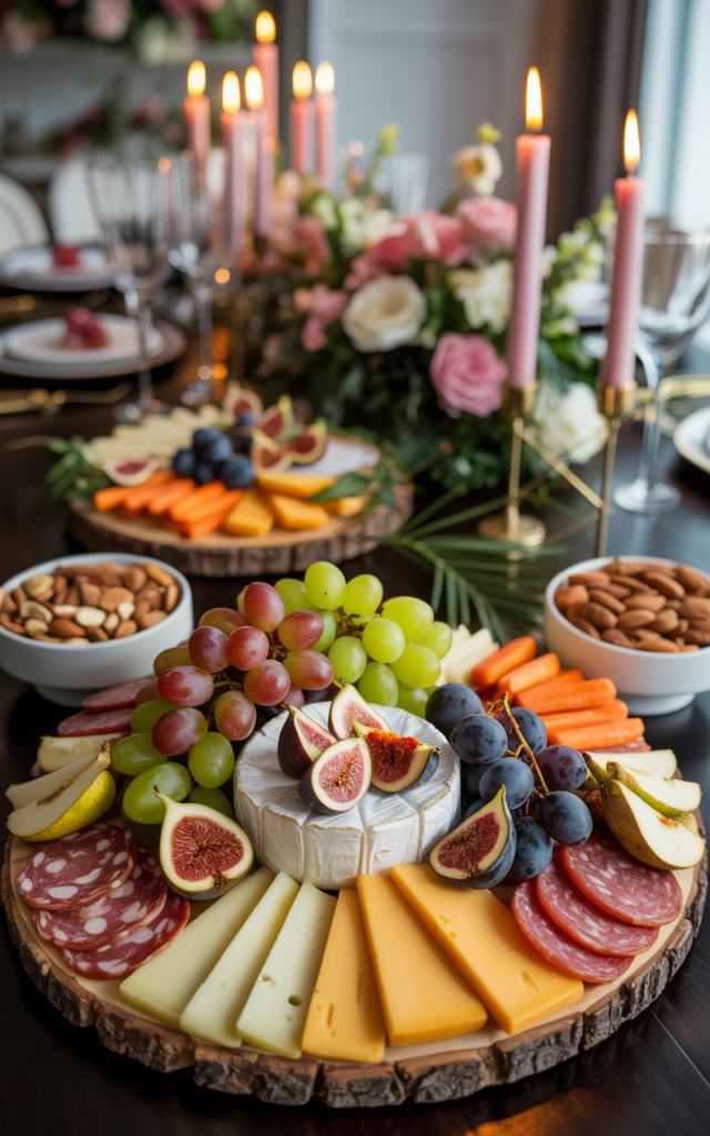 - Decadent Dessert Board: Combine chocolate-dipped strawberries, macarons, mini cheesecakes, and clusters of fresh berries for a sweet finale.