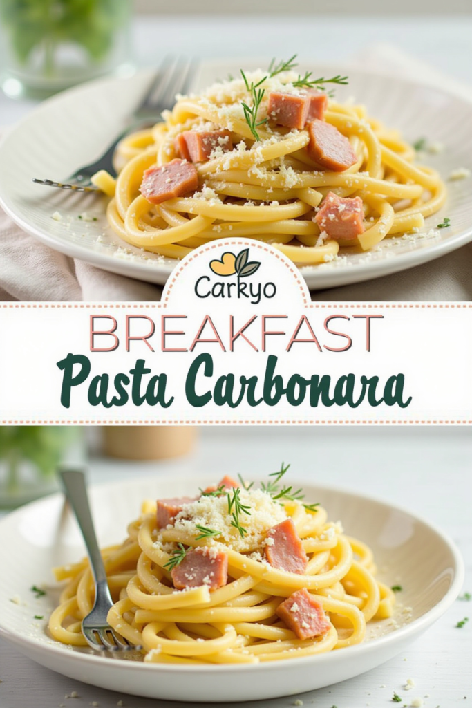 Breakfast Pasta Carbonara is best served immediately, lovingly twirled into bowls. Top with a yolky poached or fried egg for extra richness. Pair with a simple fruit salad and strong coffee for a brunch spread that feels both luxurious and effortless. This dish is easily scalable—perfect for a cozy family morning or a bustling weekend brunch with friends.