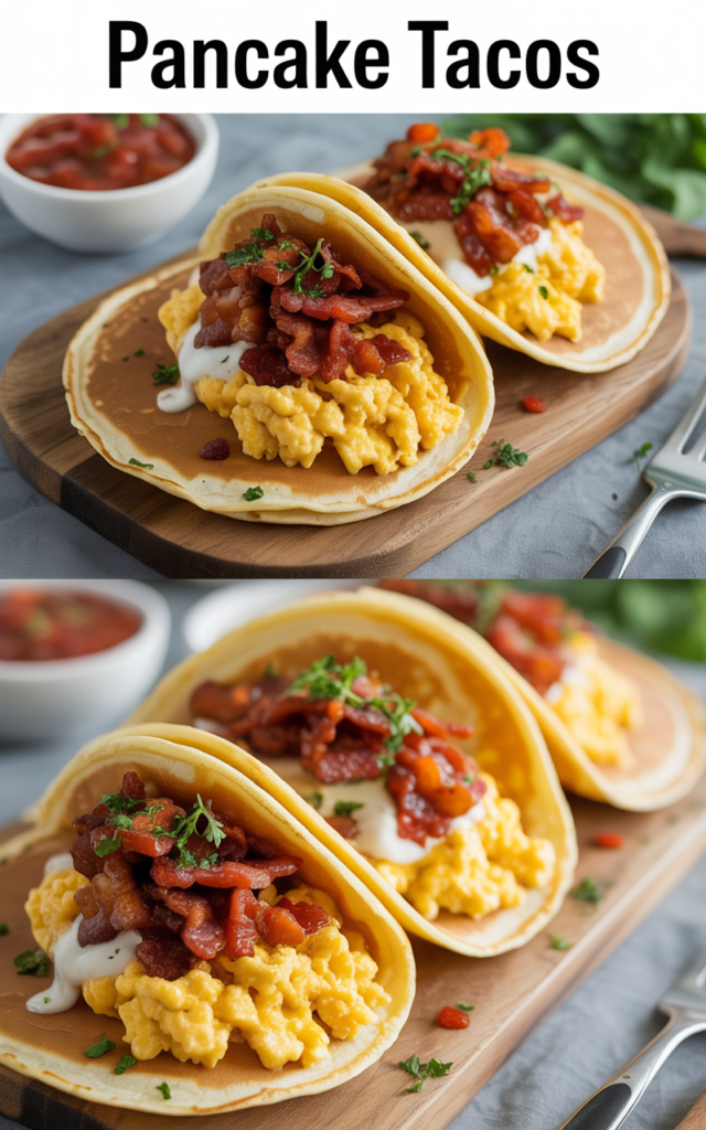 Unlike regular pancakes, these are made with a touch less sugar and packed with fresh herbs. The balance of a subtly sweet, fluffy exterior and a savory filling—think scrambled eggs, roasted veggies, crispy bacon, or shredded chicken—gives every bite complex layers and satisfying comfort. Their “taco” form makes them perfect hand-held meals, equally appealing for adults and kids.
